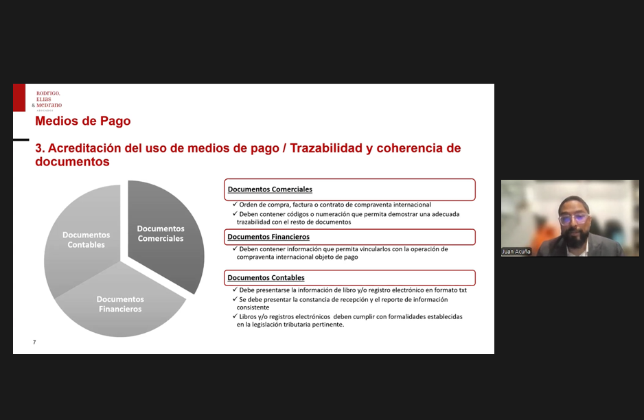 El 30 de octubre de 2025, la Cámara de Comercio Peruano China y Rodrigo Elias & Medrano Abogados realizaron el Webinar Acreditación de Uso de Medios de Pago en Operaciones de Importación, via zoom.